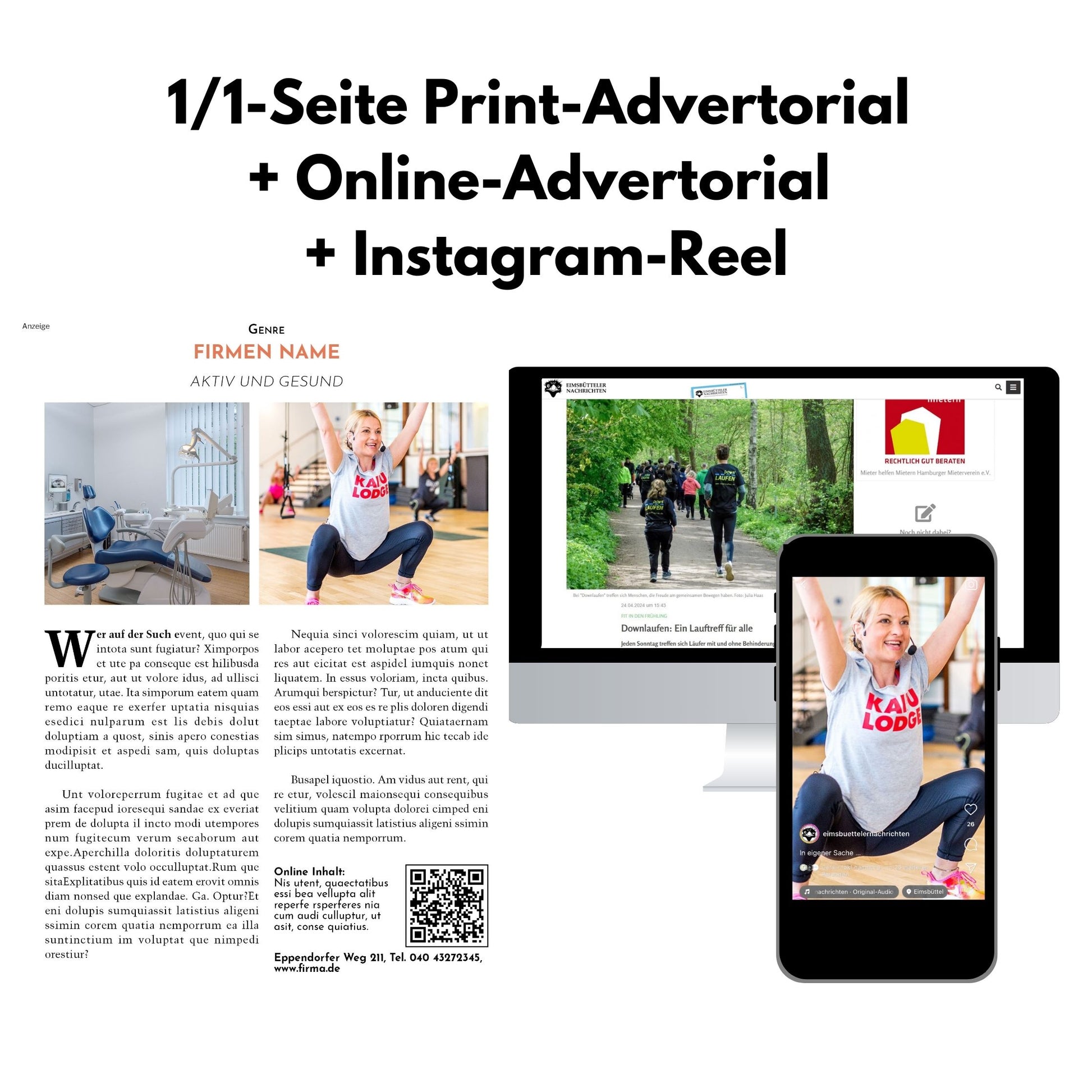 1/1-Seite Print-Advertorial + Online-Advertorial + Instagram-Reel: 990 €
